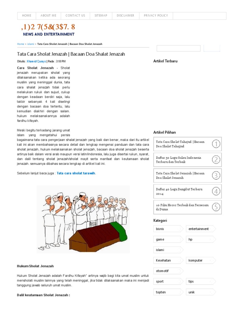 Sholat yang dilakukan terhadap orang meninggal atau jenazah dinamakan shalat jenazah. Salah satu rangkaian dari dari pengurusan jenazah adalah dilakukannya sholat jenazah. Sholat jenazah dilakukan dengan berdiri (bila mampu), dan terdiri dari empat takbir. Cara membuat privacy policy blog. Setiap takbir dibacakan ayat dan doa yang berbeda.