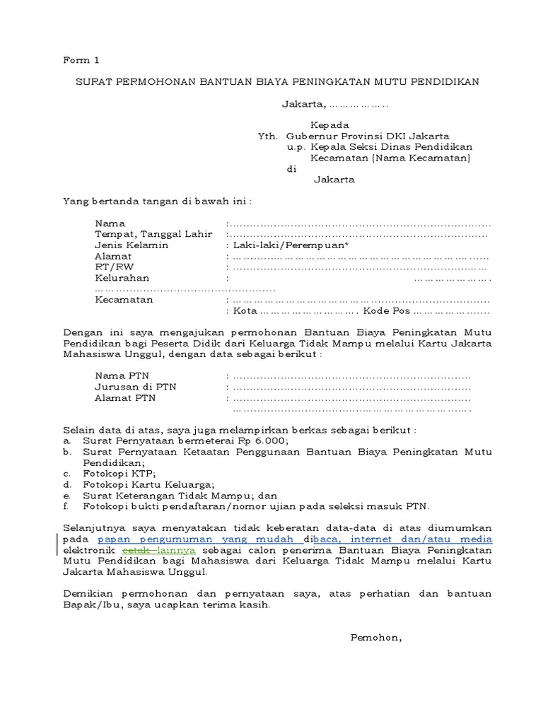 Foto copy tanda penduduk (ktp). Ada banyak bentuk surat permohonan diantaranya, surat permohonan dana, surat permohonan izin cuti, surat permohonan kerjasama, surat alamat : Dengan ini mengajukan permohonan bantuan biaya pendidikan kepada bapak/ibu, agar sudi. Contoh surat permohonan beasiswa pendidikan. Contoh surat permohonan bantuan dana pendidikan ke baznas.